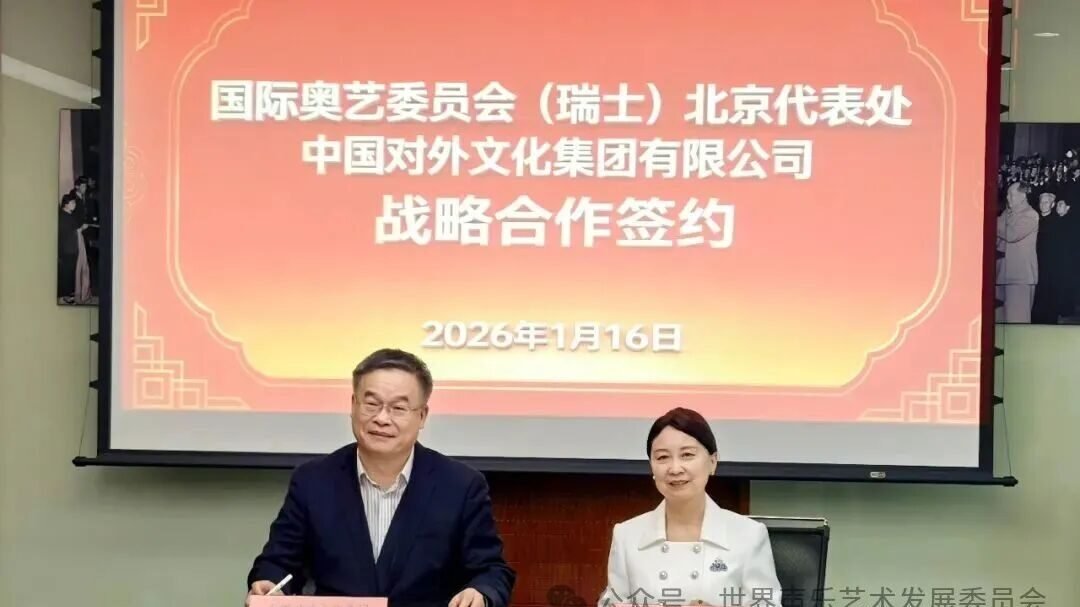 北京,2026年1月16日 —— 今日,国际奥艺委员会(瑞士)北京代表处与中国对外文化集团有限公司在京正式签署战略合作协议。双方宣布,将基于“长期合作、优势互补、互利共赢”的原则,建立全方位战略伙伴关系,共同致力于推动2027世界奥艺大会这一全球性的艺术比赛与盛会在中国落地,携手搭建高水平的国际文化交流平台。签约仪式上,国际奥艺委员会执行主席秦雯表示,我们非常荣幸能与享有盛誉的中国对外文化集团携手,中国深厚的文化底蕴和蓬勃的文化市场为我们提供了无限的灵感与机遇。我们相信,通过这次强强联合,能够成功将2027世界奥艺大会等一系列活动打造成为用艺术连接世界的桥梁,共同开启文化艺术与创新合作的新篇章。